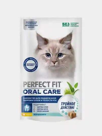 Лакомство для кошек Perfect Fit, для здоровья зубов, курица, мята, 50 г