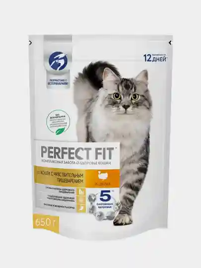 Корм Perfect Fit, для кошек с чувствительным пищеварением, с индейкой, 650 г