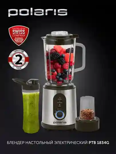 Настольный блендер Polaris PTB 1834G, для смузи и коктейлей, высокоскоростной, 1800 Вт                       | TM Polaris |