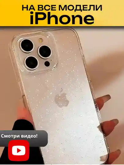 Чехол для iPhone 11, 12, 13, 14, 15, 16, Pro, Max, прозрачный, силиконовый с блестками