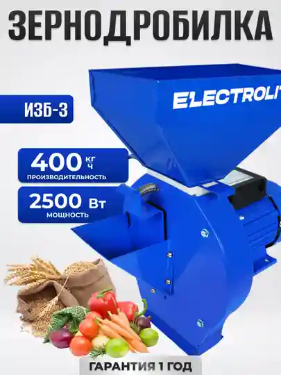 Зернодробилка для домашнего хозяйства электрическая ELECTROLITE ИЗБ-3 2500 Вт 400 КГ/Ч