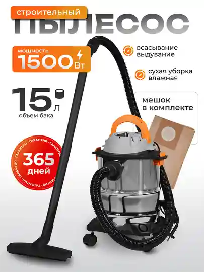 Пылесос промышленный/строительный ПС 15С (1500 Вт,15 л,режим выдува,сухая /влажная уборка)