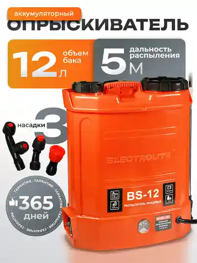 Опрыскиватель аккумуляторный садовый электрический ранцевый для растений ELECTROLITE BS-12