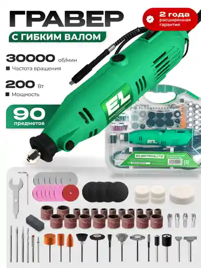 Гравер электрический Electrolite ГР-200 с набором (200 Вт, 90 шт насадок, 30000 об./мин)