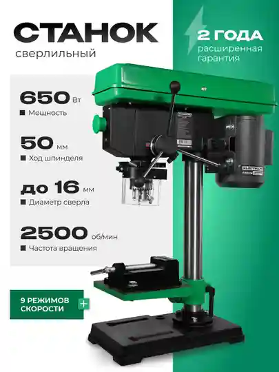 Станок сверлильный настольный СС-650/16(650 Вт, 6 мм патрон, 9 скоростей, тиски в комплекте)