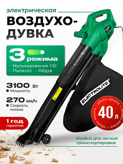 Воздуходувка электрическая Electrolite EL-3100 - 900м3/ч, 3000 Вт,3 режима,мешок для сбора