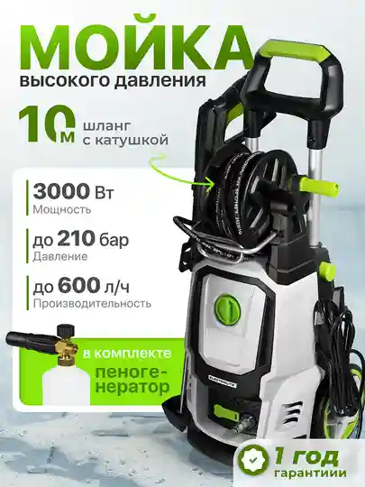 Мойка высокого давления 3000 С НАБОРОМ -3000 Вт, 150-210 бар,пеногенератор в комплекте,