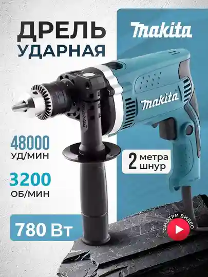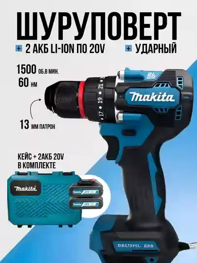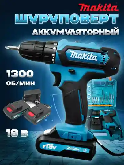 Шуруповерт-дрель Makita, аккумуляторный, 18V, с набором оснастки, ударный