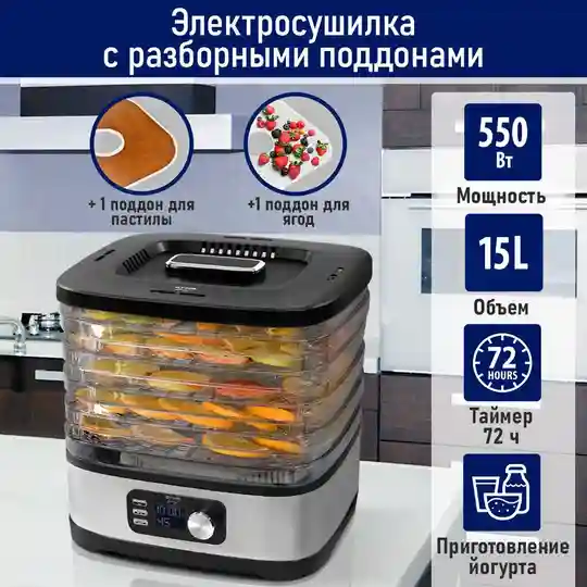 Сушилка для овощей и фруктов STINGRAY ST-FD713B, 7 поддонов, мощность 350 Вт, черный