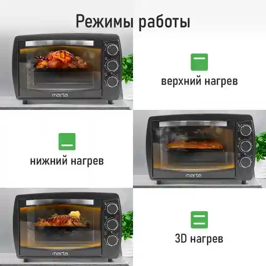 Духовой шкаф (Мини-печь) MARTA MT-EO4295C (23 литра, ВЕРТЕЛ+ КОНВЕКЦИЯ) черный жемчуг