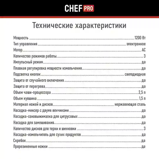 Блендер стационарный 9 в 1 CHEF PRO CF-KP1103B с электронной панелью управления, 1200Вт