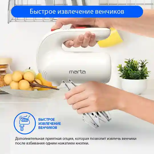 Миксер ручной MARTA MT-MX1515B 800Вт, 5 скоростей, 4 насадки, темный аметист
