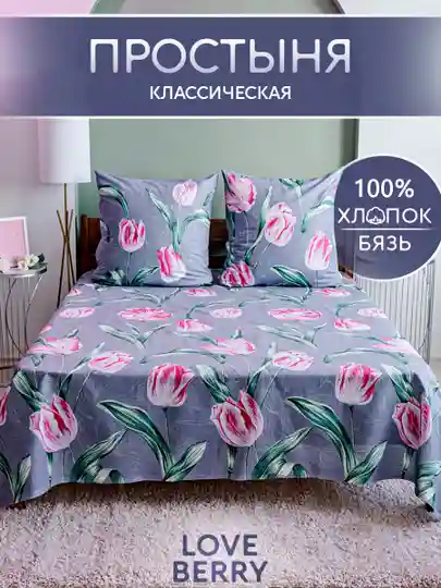 Простыня Loveberry классическая из бязи, 100% хлопок