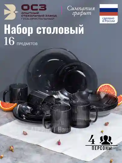 Набор столовый ОСЗ СИМПАТИЯ ГРАФИТ 16 предметов 4 персоны