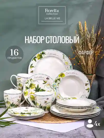 Набор посуды столовой фарфоровый FIORETTA LA BELLE VIE на 4 персоны (16 предметов)