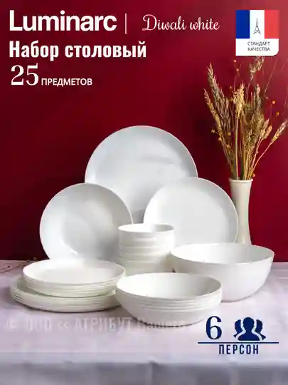 Набор посуды столовой DIWALI WHITE 25пр
