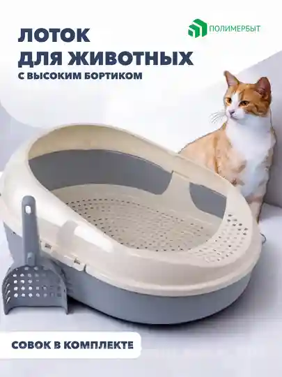 Лоток для кошек COSMO серый с сеткой и совком
