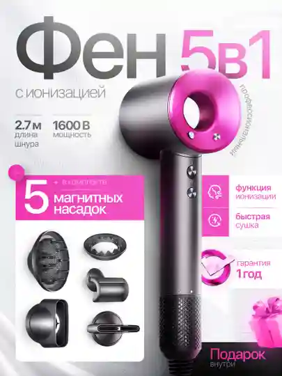 Фен для волос профессиональный мощный с насадками 5 в 1