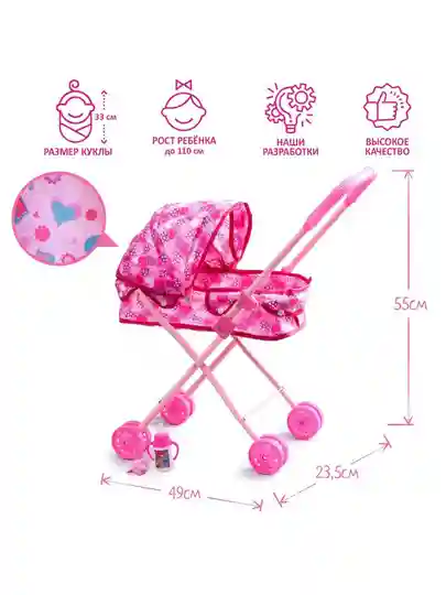 Коляска для куклы прогулочная с аксессуарами, WINX, металл