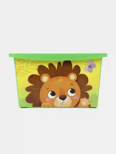 Ящик для игрушек, с крышкой, "Весёлый зоопарк", объём 30 л, цвет зелёный