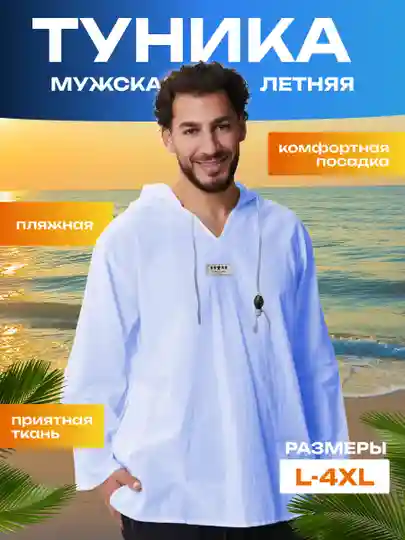 Муслиновая рубашка мужская, туника мужская пляжная