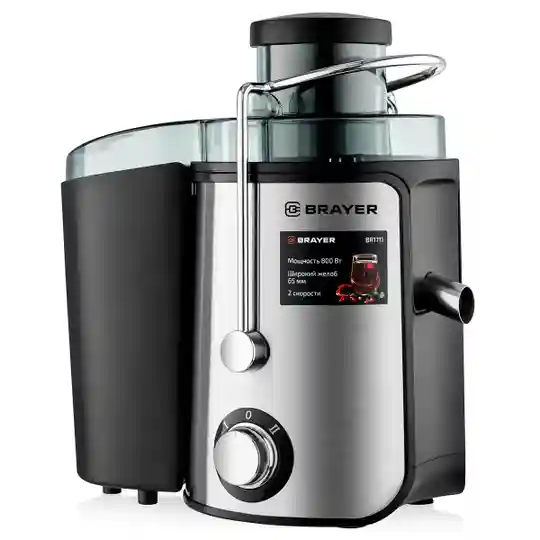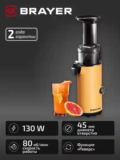 Соковыжималка BRAYER BR1706YE шнековая, 130 Вт, рев, диам 45 мм