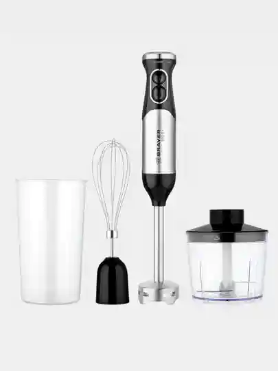 Блендер погружной BRAYER BR1244, 800 Вт, НЕРЖ, Пюре, 2 ск, пл. рег, венч, стак 700