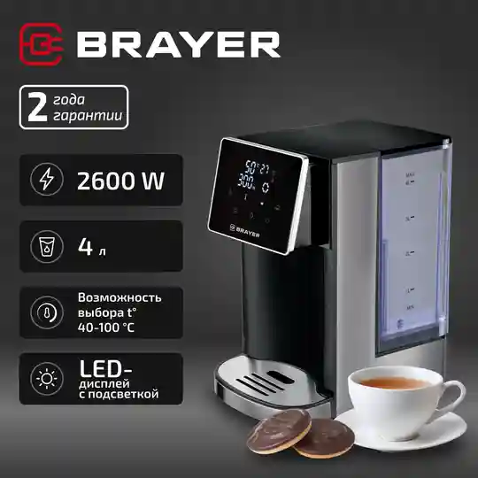 Чайник электрический BRAYER BR1015, 2200 Вт,1,5 л, 40-100 С, стекло, сито для чая