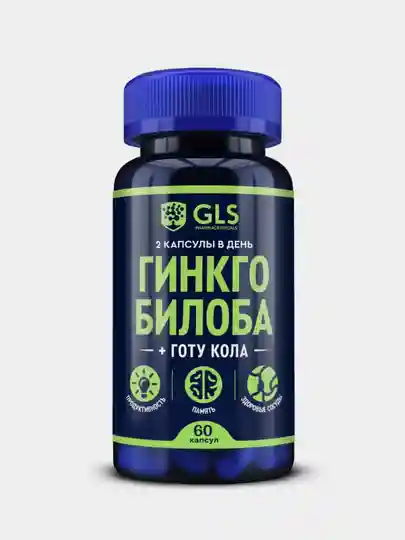 БАД к пище GLS Pharmaceuticals "Гинкго билоба + Готу кола", 60 капсул