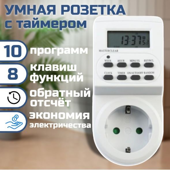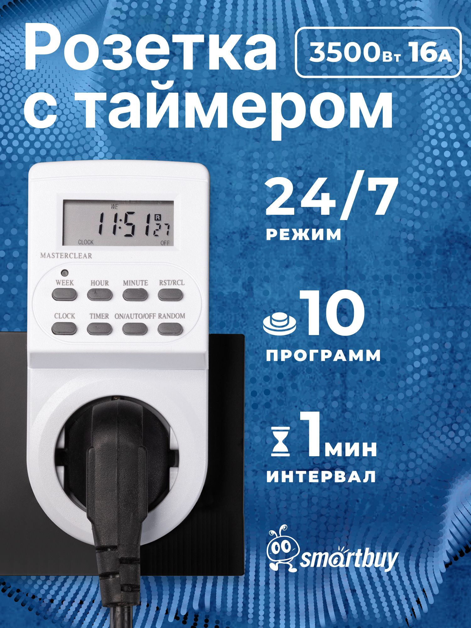 Умная розетка Smartbuy с таймером электронным (недельный+суточный) 3600Вт