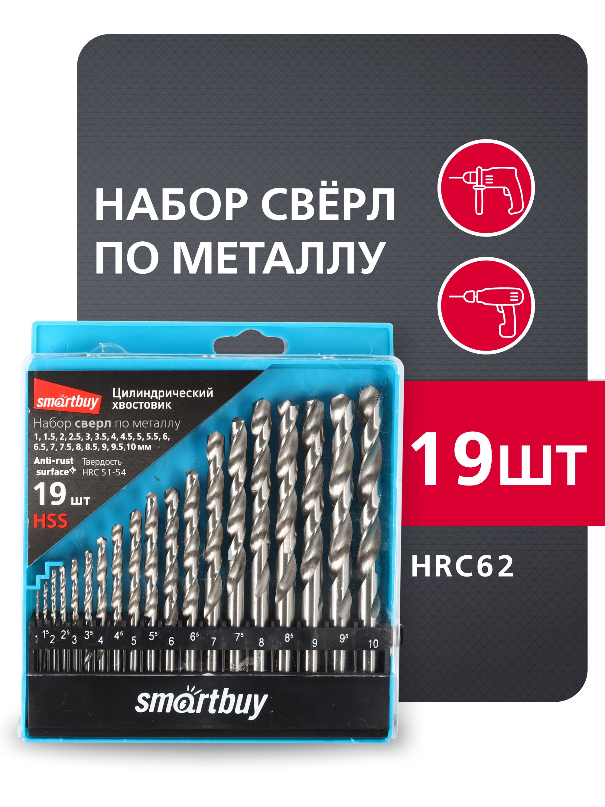 Набор Smartbuy 19 сверл по металлу, D от 1 до 10 мм с шагом 0.5 мм, до HRC62, кейс