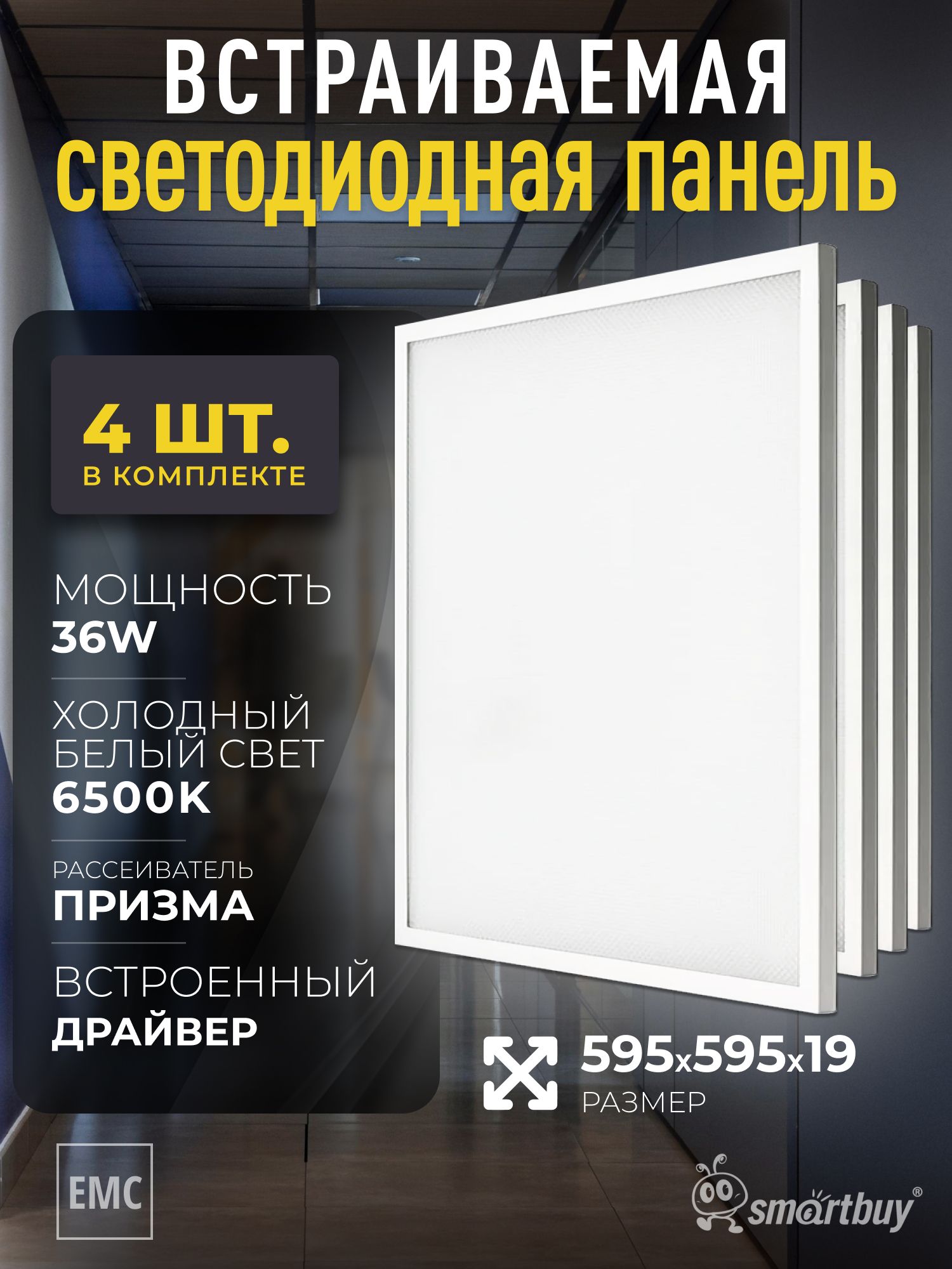 Светильник потолочный светодиодный 4шт, Smartbuy 6500K (SBL-UNIEMC-36W-65)