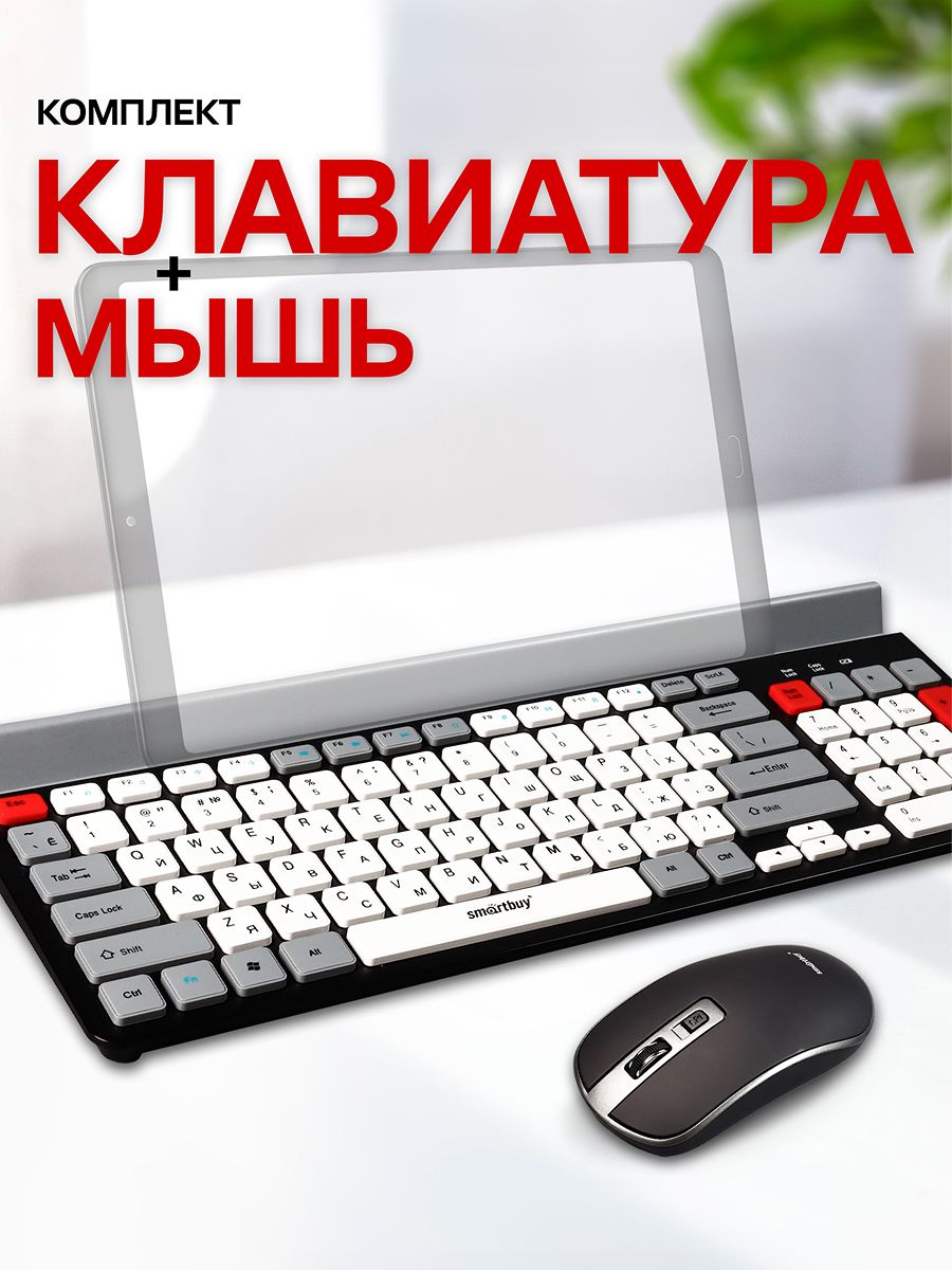 Клавиатура и мышь беспроводной набор, Smartbuy 201359AG, серый, белый, черный, с подставкой