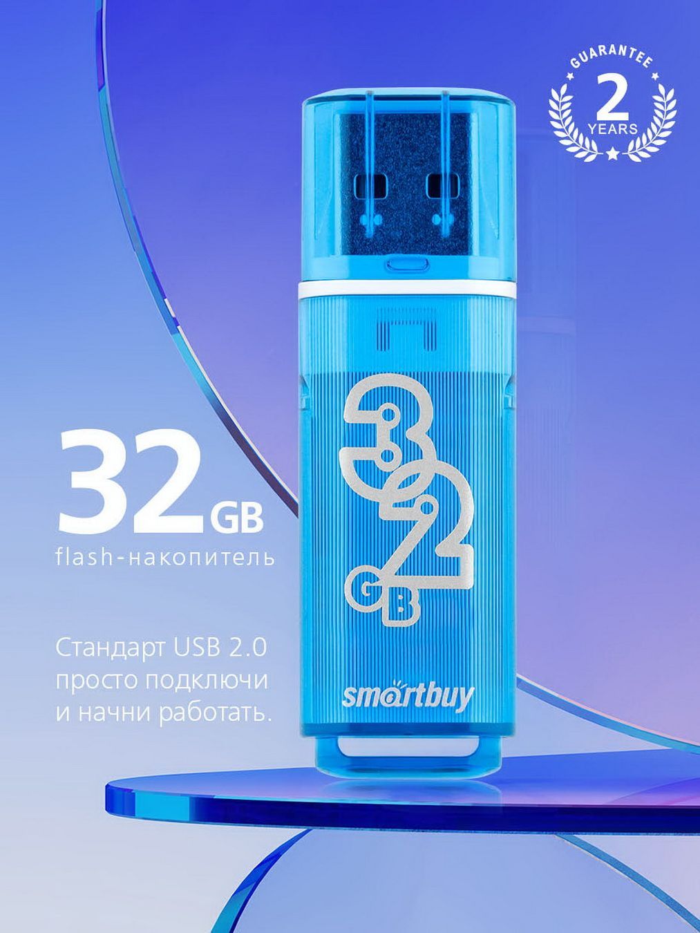 Флешка usb 32 ГБ Smartbuy Glossy, синий