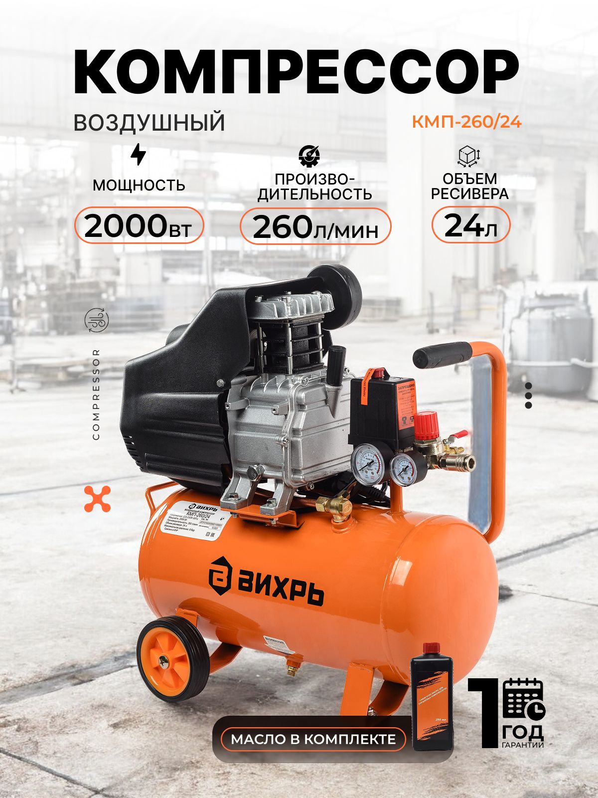 Компрессор воздушный Вихрь КМП-260/24 (2000Вт, 8 бар) / Поршневой / Масляный
