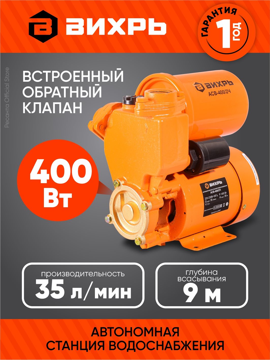 Насосная станция для воды- 400Вт, Вихрь бак 2л, 35л/мин, напор 35м, с обратным клапаном/ АСВ-400/2Ч