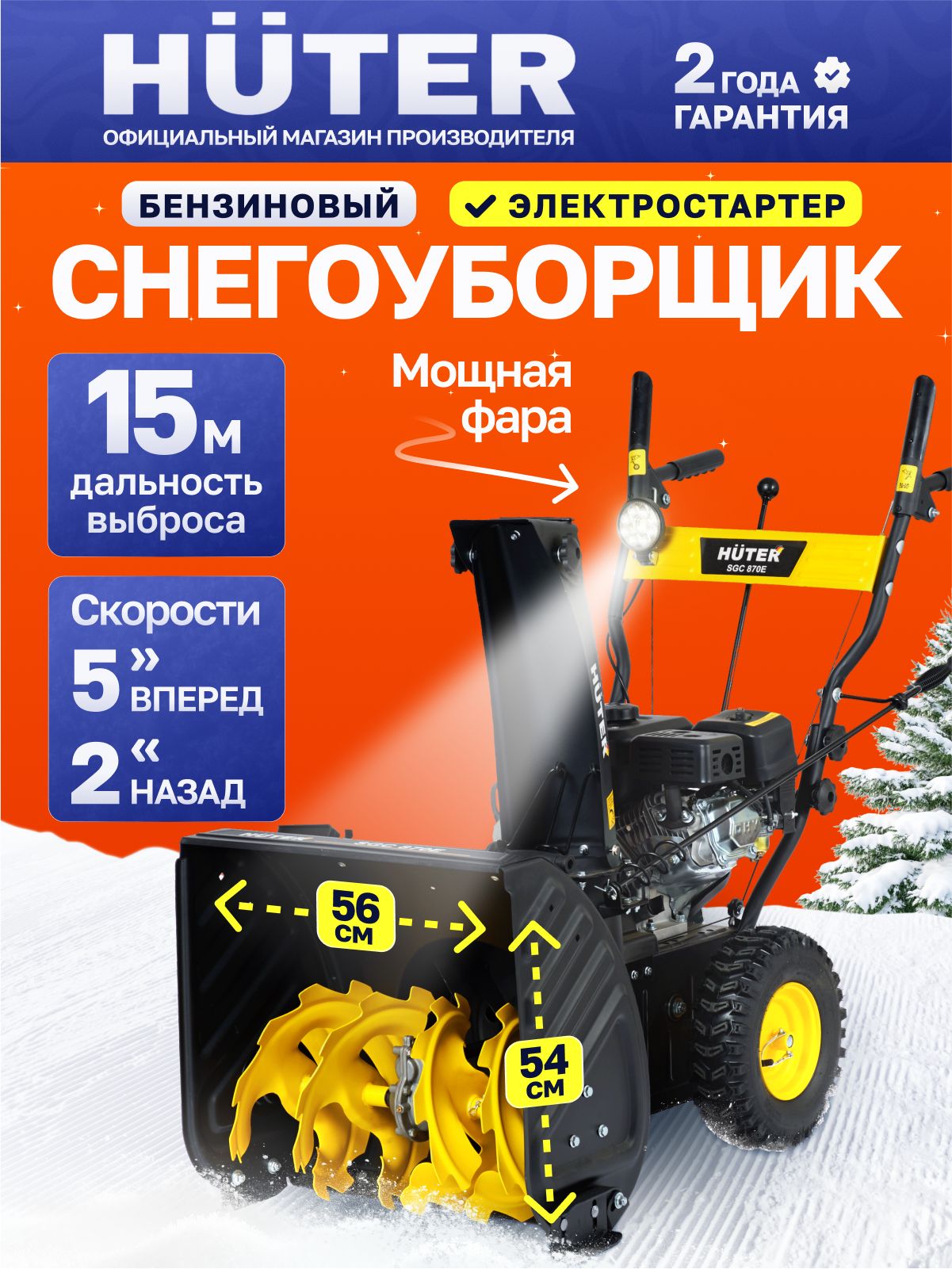 Снегоуборщик бензиновый самоходный Huter SGC 870 E, 7 л.с., электростартер от сети, ковш 56х54см, с фарой