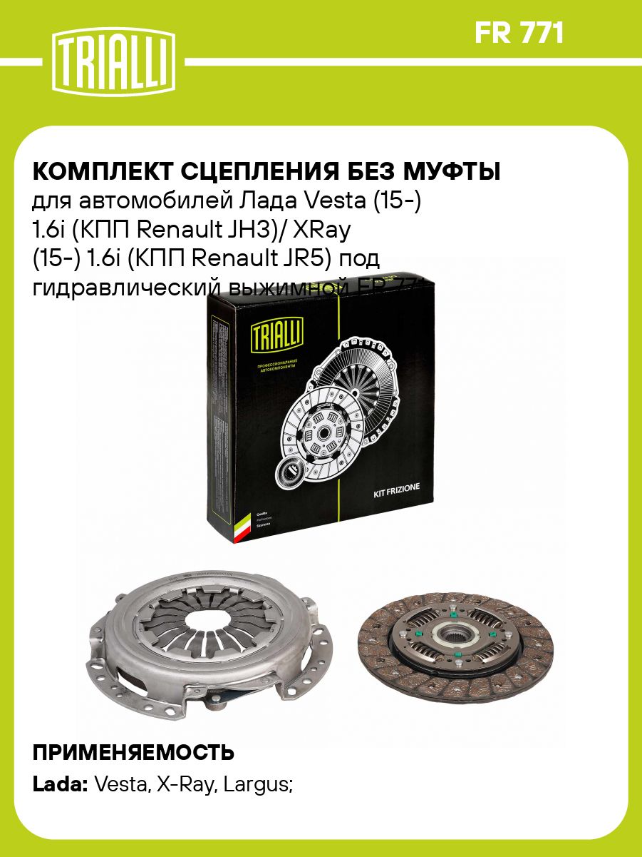 Комплект сцепления без муфты для автомобилей Лада Vesta (15 ) 1.6i (КПП Renault JH3)/ XRay (15 ) 1.6i (КПП Renault JR5) под гидравлический выжимной TRIALLI FR 771