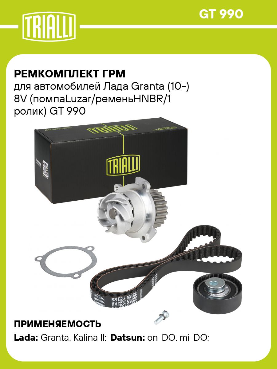 Ремкомплект ГРМ для автомобилей Лада Granta (10 ) 8V (помпаLuzar/ременьHNBR/1 ролик) TRIALLI GT 990