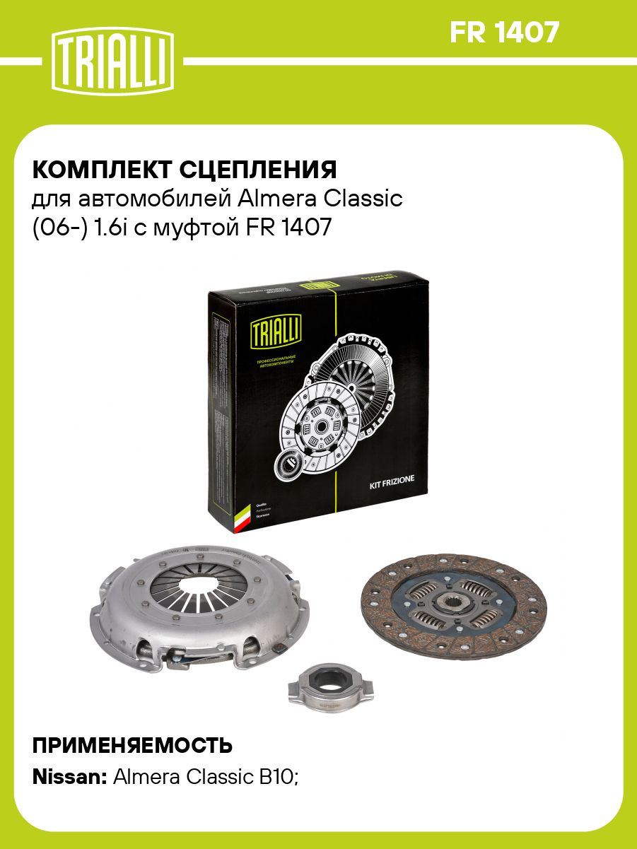 Комплект сцепления для автомобилей Almera Classic (06 ) 1.6i с муфтой TRIALLI FR 1407