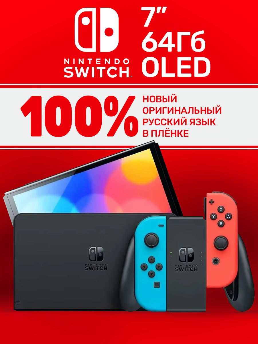 Игровая приставка Nintendo Switch OLED 64 ГБ, игровая консоль - глобальная версия, поддержка русского языка, цвет голубой/красный