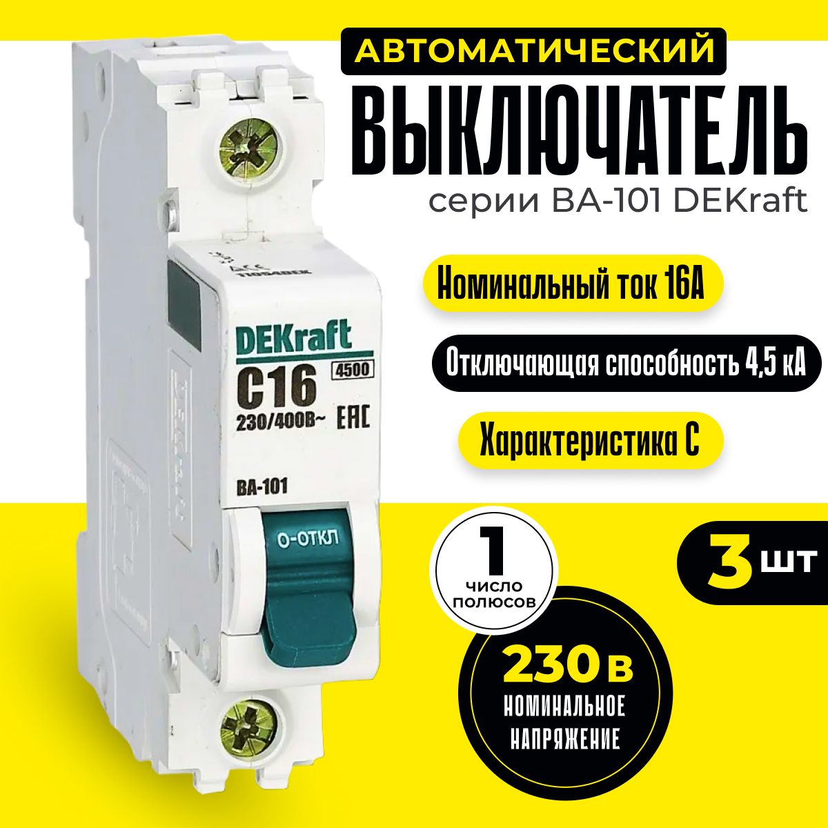 Выключатель автоматический (3шт) 1п 16А С 4,5кА DEKraft 11054DEK автомат однополюсный