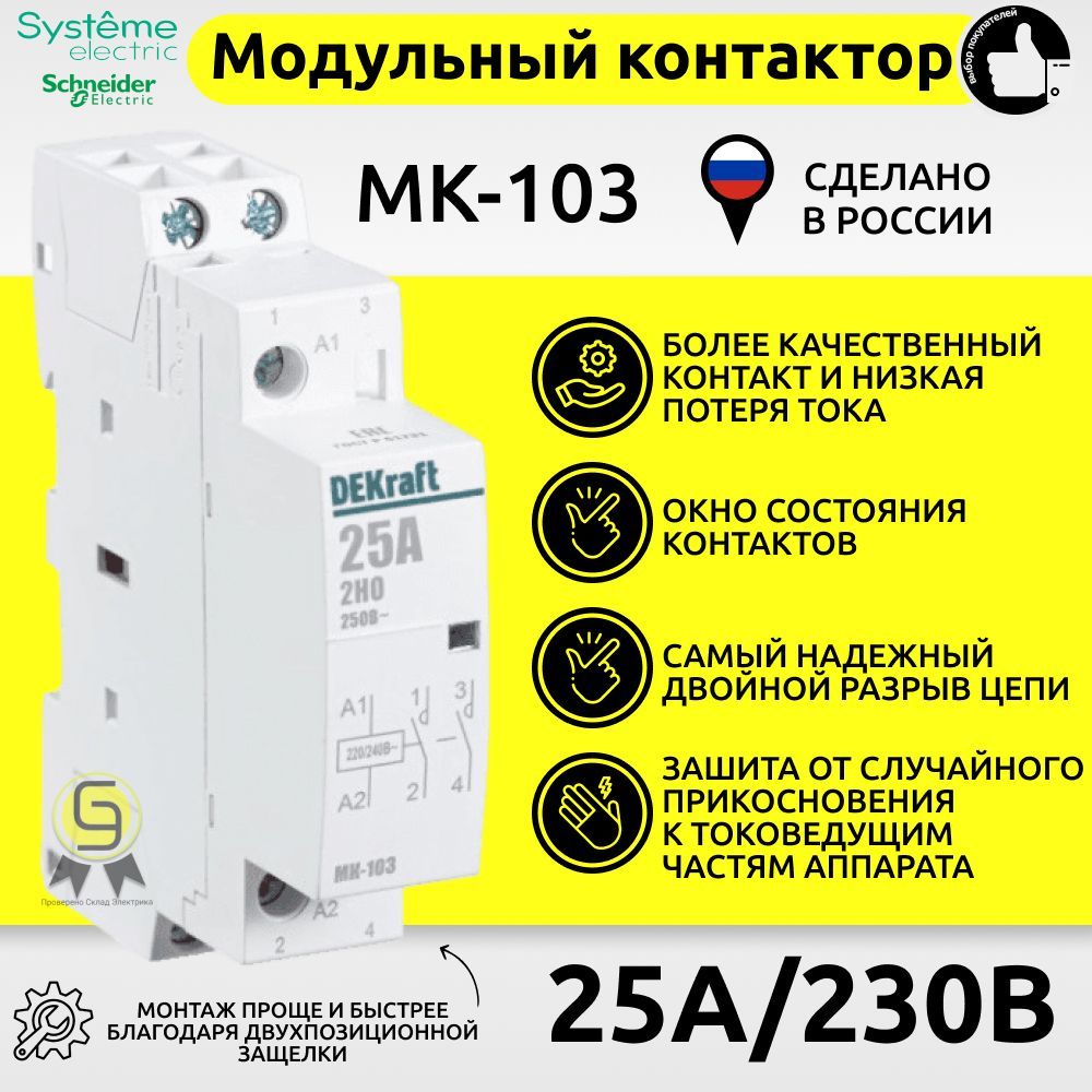 Контактор модульный 2НО 25А 230В МК-103 DEKraft