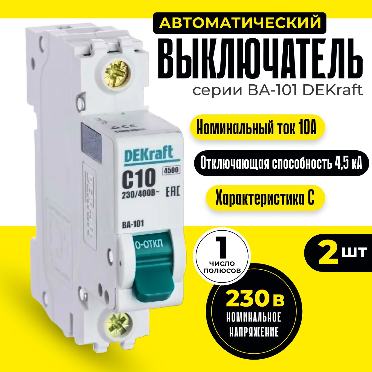 Выключатель автоматический (2шт) 1п 10А С 4,5кА DEKraft 11053DEK автомат однополюсный