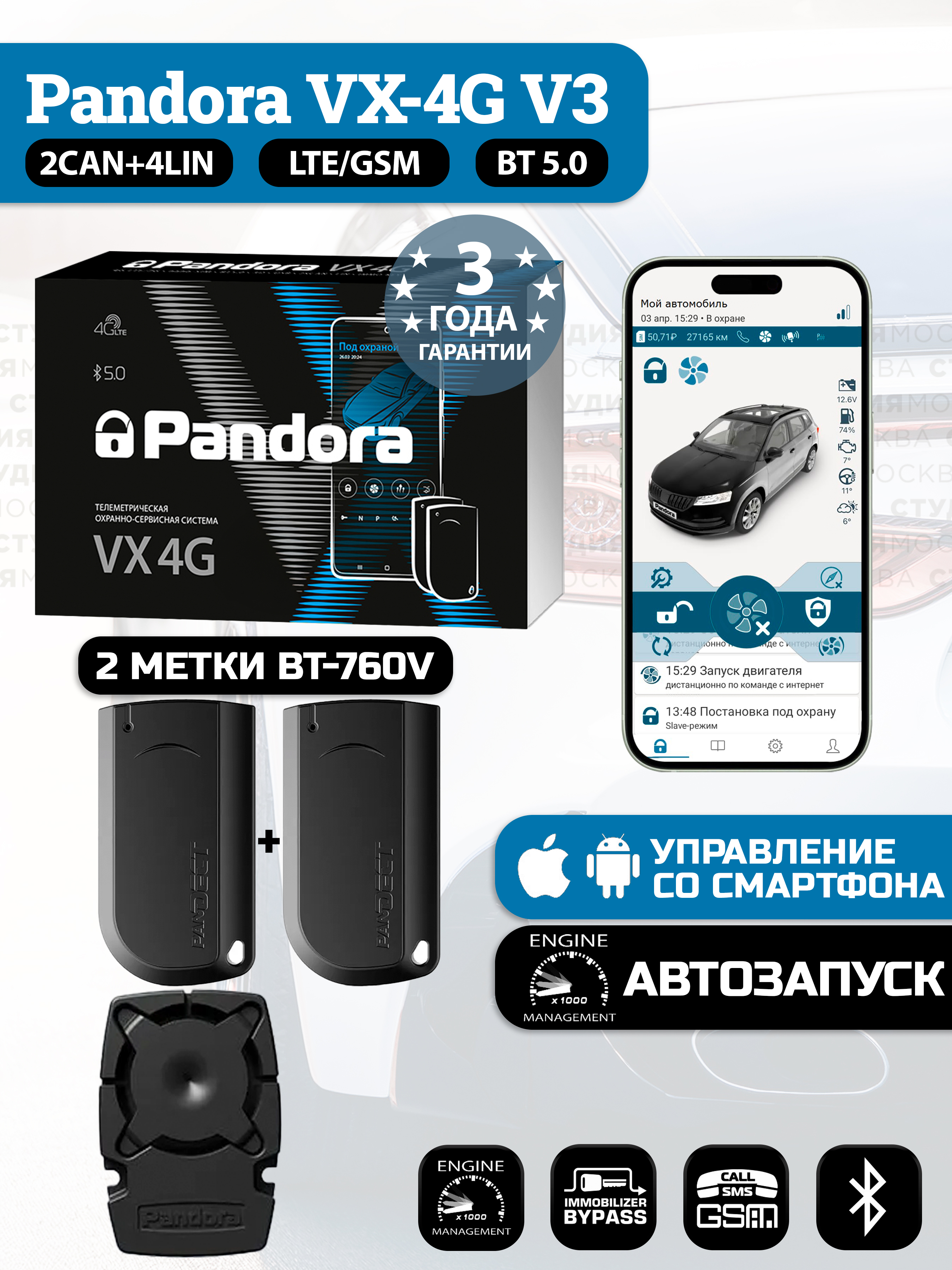 Pandora VX 4G V3 GPS GSM Bluetooth 5.0 Автосигнализация с автозапуском