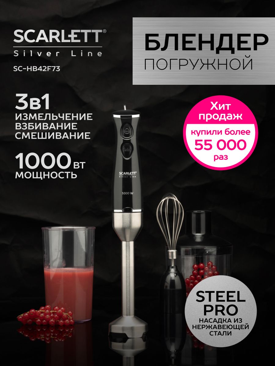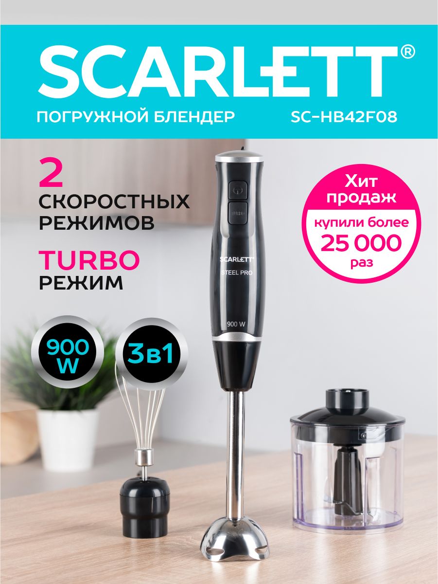 Scarlett Погружной блендер SC-HB42F08, TURBO режим, 900 Вт, черный, серебристый