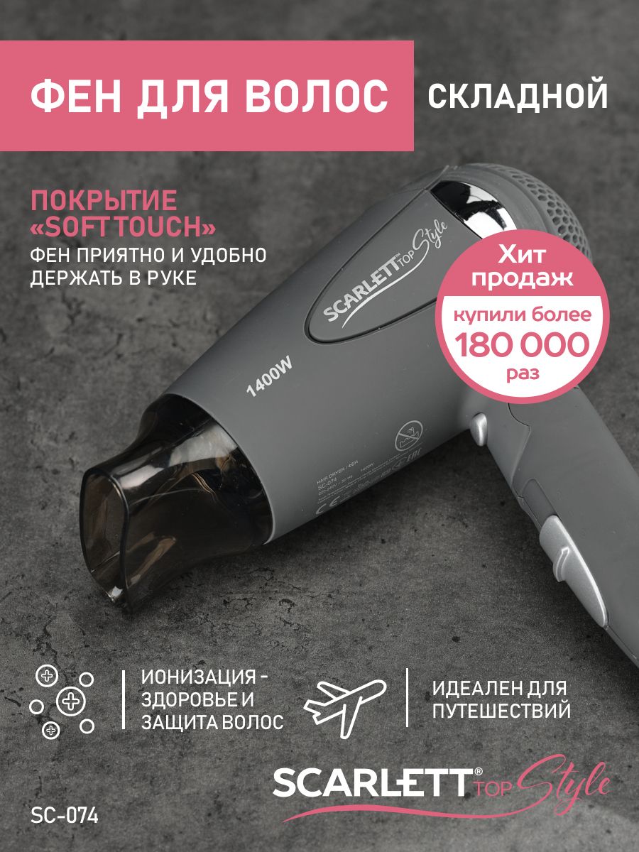 Scarlett Фен для волос SC-074 1400 Вт, скоростей 2, кол-во насадок 1, серый