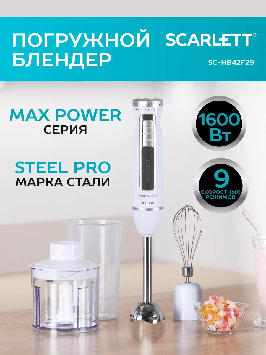 Scarlett Погружной блендер SC-HB42F29, TURBO режим, 1600 Вт, белый