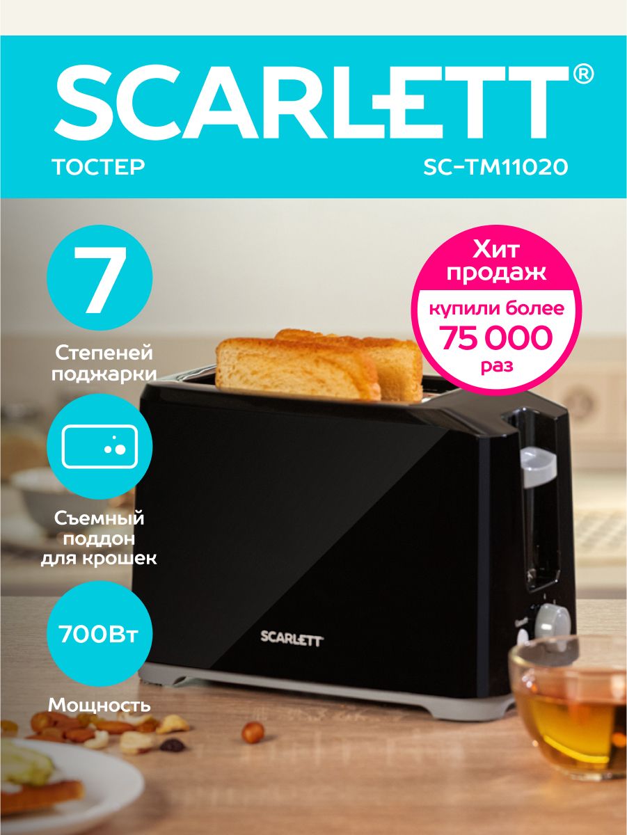 Scarlett Тостер SC-TM11020 700 Вт тостов - 2, черный