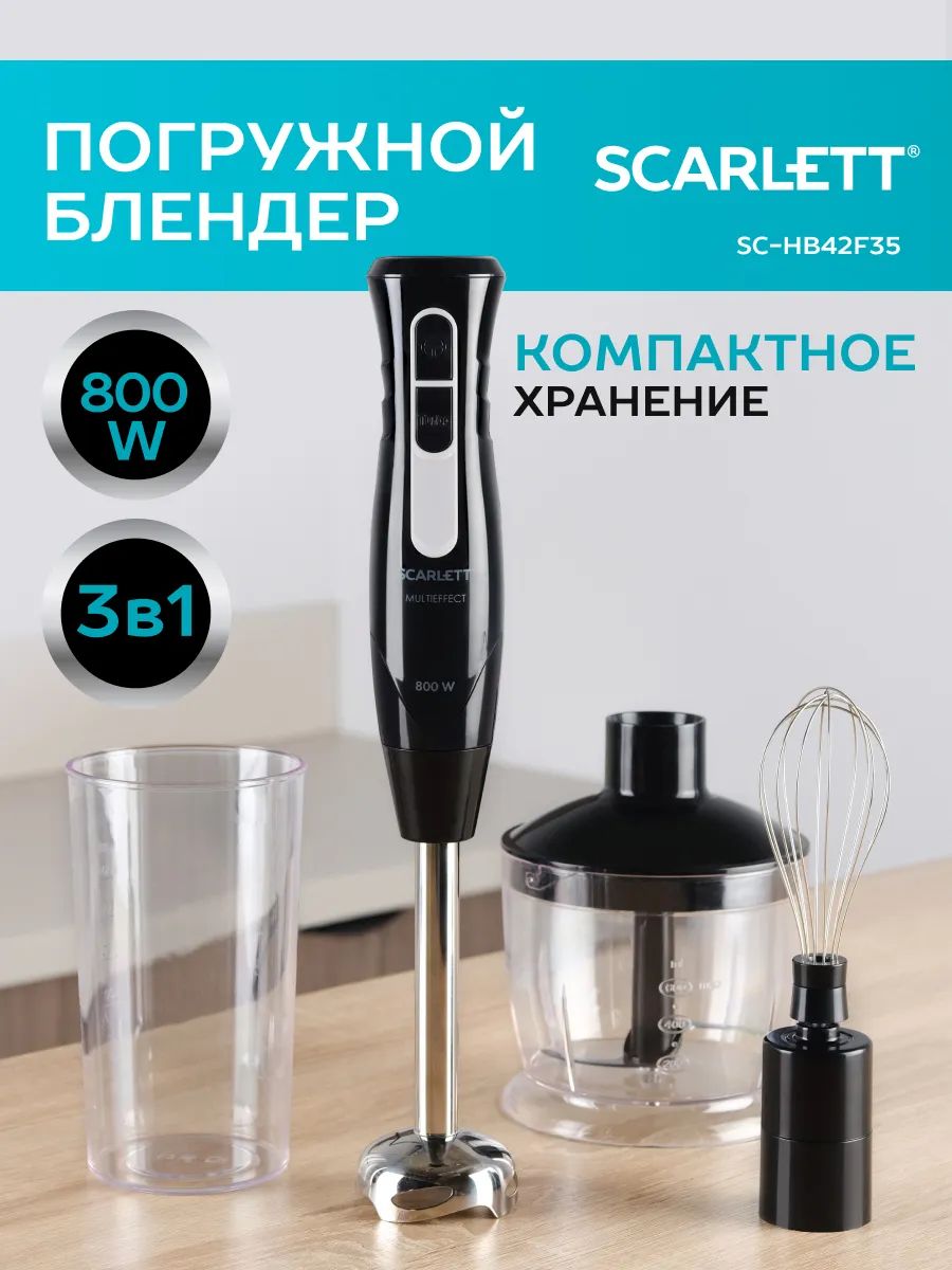 Scarlett Погружной блендер SC-HB42M47, 4 в 1 – измельчение, взбивание, смешивание, приготовление картофельного пюре, черный